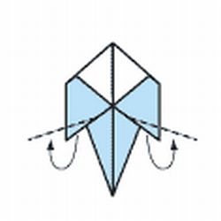Fase 4: Piegare gli angoli del modellino verso la piega che avevamo fatto nel centro ed ora aprire di nuovo.