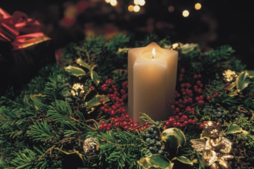 - 3 ceri di altezze diverse (se non li trovate, potete tagliarli voi in scala con un coltello per il pane. Le candele devono essere natalizie, quindi rosse, argento, oro o blu).